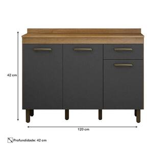 Balcão de Cozinha São Luís Cinamomo Grafite - Valdemóveis