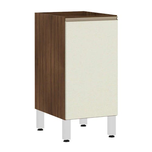 Características Corpo/Caixaria: MDP - Nogueira Dourado - FF. Frontais: MDP - Acabamentos em BP. Dobradiças: Ø35mm Slow motion. Puxadores: Alumínio Gola - Inox. Pés: P S - Cromado Portas: 1 Prateleiras: 1 Montagem com Minifix, Parafusos e cavilhas. Itens incluso: manual de montagem, ferragens e acessórios para montagem.