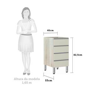 Balcão de Cozinha sem Tampo 40cm 4 Gavetas Lis Luciane Móveis - Bege Claro