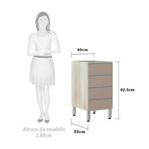 Balcão de Cozinha sem Tampo 40cm 4 Gavetas Lis Luciane Móveis - Blush