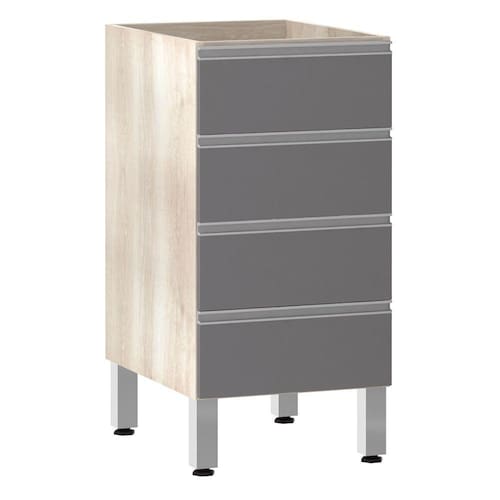 Características: Corpo/Caixaria: MDP Legno Crema FF. Frontais: MDP - BP. Dobradiças: Ø35mm. Puxadores: Alumínio Gola - Prata. Pés: P S - Cromado. Gavetas: 4 Itens inclusos: Manual de montagem, ferragens e acessórios. Montagem com cavilhas e parafusos.