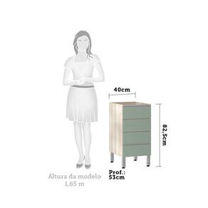 Balcão de Cozinha sem Tampo 40cm 4 Gavetas Lis Luciane Móveis - Verde Cinza