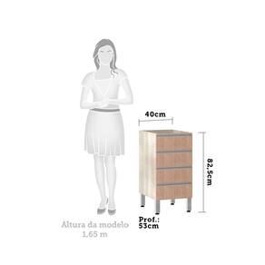 Balcão de Cozinha sem Tampo 40cm 4 Gavetas Lis Luciane Móveis - Palha