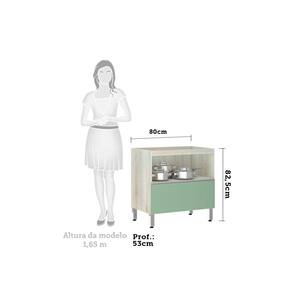 Balcão de Cozinha sem Tampo 80cm Misto 1 Porta Basculante e 1 Gavetão Lis Luciane Móveis - Verde Cinza