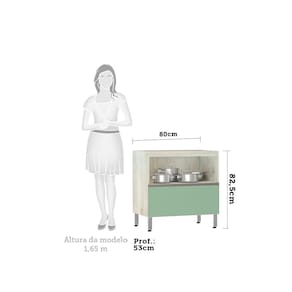 Balcão de Cozinha sem Tampo 80cm Misto 1 Porta Basculante e 1 Gavetão Luci Luciane Móveis - Verde Cinza