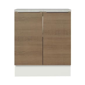 O acabamento da estrutura é branco e as portas são em amadeirado Rustic. É feito em Poliéster Protetor ecológico de alta resistência, que protege o móvel dos efeitos da água e do calor.