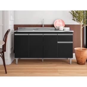 Balcão de Cozinha Tatiane 150cm Preto S/Tampo - AJL Móveis