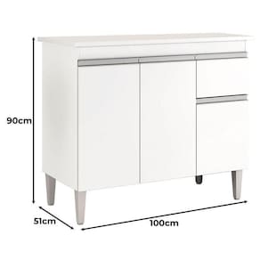 Balcão de Cozinha Tatiane com Tampo 100cm Branco Brilho - AJL