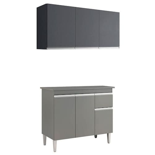 Balcão de Pia Tatiane 100cm e Armário Aéreo Andréia 3 Portas Cinza Fosco - AJL