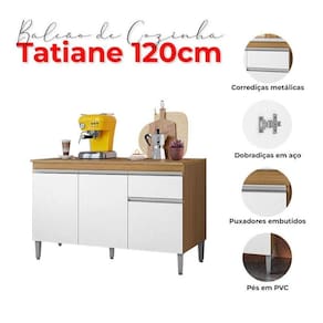Balcão de Cozinha Tatiane com Tampo 120cm Amêndoa Branco - AJL