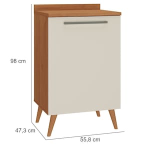 O Balcão de 59 cm Favorita é perfeito para você que procura aproveitar todos os espaços de sua cozinha sem deixar a beleza de lado. Contém uma porta, uma prateleira e quatro pés tipo retro. É possível ainda fazer composições com outros módulos da linha “Favorita”. Use sua criatividade e crie a cozinha dos seus sonhos!