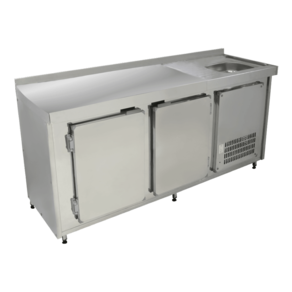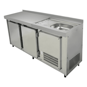 O Balcão de Encosto Com Pia 2,00m Inox Polofrio 4103 220v é um apoio indispensável em cozinhas de hotéis, restaurantes, bares, clubes, lanchonetes, mercados, mercearias e outros estabelecimentos que necessitem de refrigeração a temperaturas de 1º a +7 ºC para alimentos não congelados, como frios, laticínios, bebidas e outros, a refrigeração é estática, com 1 placa fria no teto, possui isolamento térmico em poliuretano injetado e acabamento em aço inox 430.
