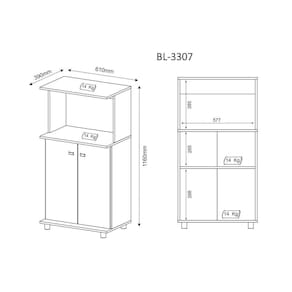 CARACTERÍSTICAS DE MÓVEIS Tipo de Estrutura do Móvel - MDP/BP Tipo de Acabamento da Pintura - Semi Brilho Tipo de puxador - ABS/PVC Quantidade de Prateleiras - 1 Prateleira Quantidade de Portas - 2 Portas de Abrir Diferenciais dos Nichos - Nicho p/ Microondas Garantia - 3 meses