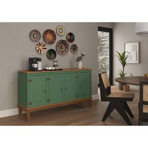 O Balcão de Madeira Maciça 4 Portas e 4 Gavetas - Verde da La Decora é completamente cheio de charme e elegância.
