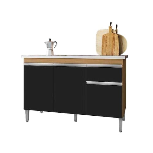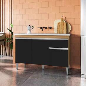 Balcão De Pia 120 Cm Talita 3 Portas 1 Gaveta Amêndoa/preto