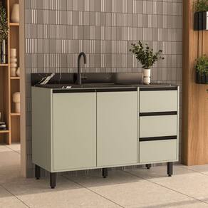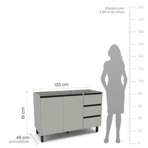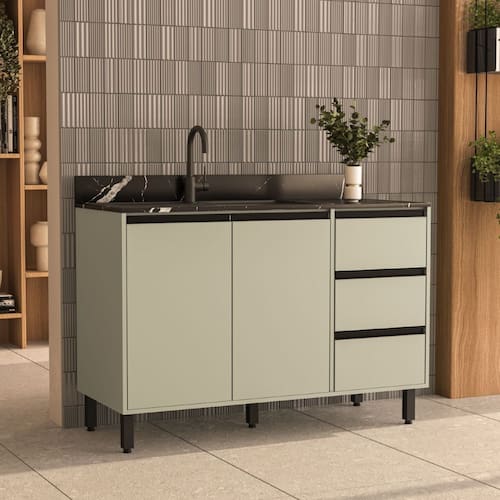 Balcão de Pia 120cm 2 Portas e 3 Gavetas Koya Verde Oliva Politorno Móveis