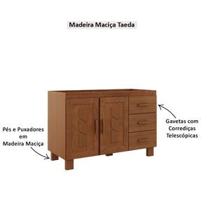 Características: Estrutura em Madeira Maciça Pinus Taeda de reflorestamento Prateleiras e divisórias internas em MDF de 12 mm Pintura Semi-brilho 02 Portas com dobradiças metálicas Aplique em MDF com acabamento frisado e alto relevo 03 Gavetas com corrediças telescópica Pés, puxadores, estrutura das portas em madeira Amplo espaço para armazenamento Peso máximo suportado pelas Prateleiras 10kg distribuídos Peso máximo suportado pelas Gavetas 05kg distribuídos *NÃO ACOMPANHA TAMPO*