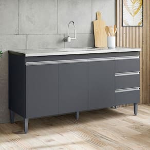 Balcão De Pia 150 Cm Adriana 3 Portas 3 Gavetas Cinza