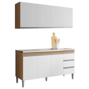 Balcão de Pia 150cm e Armário Aéreo Andreia Amêndoa Branco - AJL