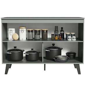 A parte interna é dividida entre uma prateleira e três nichos, perfeitos para organizar panelas, utensílios, louças e mantimentos. O balcão acompanha tampo, que pode ser retirado para colocação de pia no tamanho de 120 cm x 52 cm.