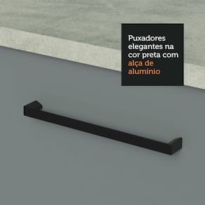 É fabricado com materiais nobres como puxadores com alça em alumínio, dobradiças metálicas com amortecimento e corrediças telescópicas para abertura total das gavetas. É ideal para organizar tudo na sua cozinha.
