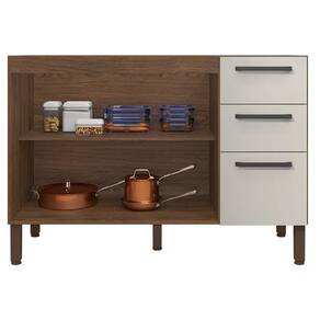 Balcão de Pia Ambiente Mad Versalhes 120 cm com Tampo Nogueira Off White - Kits Paraná