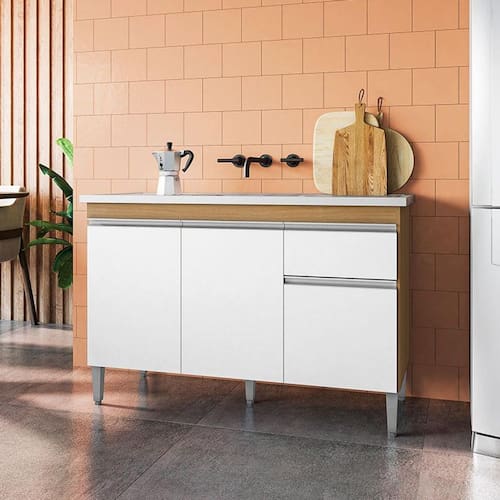 Balcão de Pia Ambiente Tatiane 120cm Amêndoa Branco - AJL
