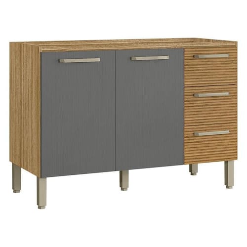 Balcão de Pia Ametista 2 Portas 3 Gavetas 120 cm Freijó Gris Ripado - Kits Paraná