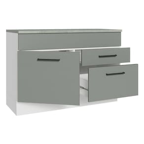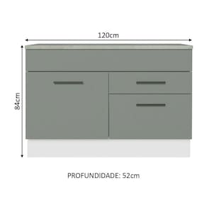 Um diferencial deste modelo é que acompanha tampo em MDP em pintura Mood, que também pode ser removido para colocação de pia de 120 cm de largura x 52 cm de profundidade.