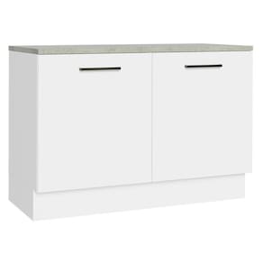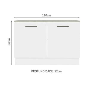 Este Balcão de Pia de 120 cm da linha Agata da Madesa possui duas portas e é fabricado com materiais de padrão superior, como puxadores com alça em alumínio e dobradiças metálicas com amortecimento.