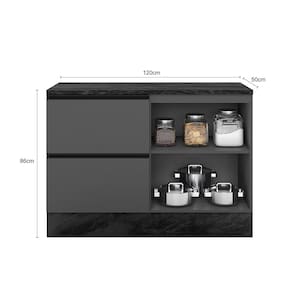 Balcão de Pia Deslocada 1 Portas 3 Gavetas (Com Tampo) 120cm Etna Grafite - SSX Multicoisas