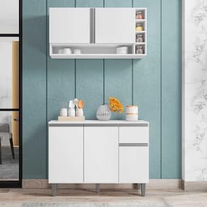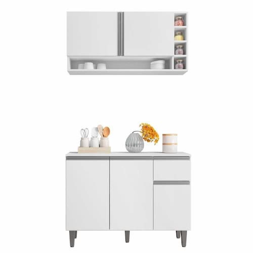 Balcão De Pia E Aéreo Cozinha 105cm Branco 1923 Sem Tampo