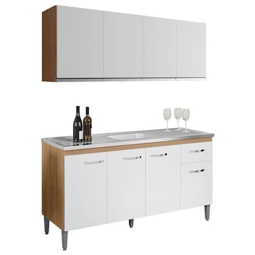 Balcão de Pia Gabriela 150cm e Armário Aéreo Andréia Amêndoa Branco - AJL