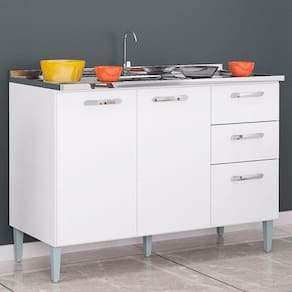 Apresentamos a você que procura por qualidade bom preço e um design moderno que irá lhe proporcionar praticidade na hora de organizar seus utensílios, o Balcão de Pia da linha Lavínia na cor Branco conta com amplo espaço interno, pés reguláveis para facilitar seu dia a dia. Confira mais sobre esse lindo balcão abaixo: