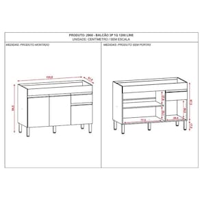 Balcão de Pia Line 120 cm Gris - Kits Paraná