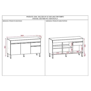 Balcão de Pia Line 150 cm com Tampo Gris - Kits Paraná