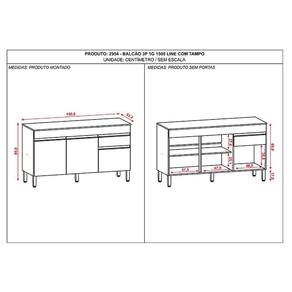 Balcão de Pia Line 150 cm com Tampo Supremo - Kits Paraná
