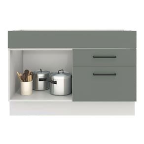 - Um (1) Balcão de 120 cm de largura com uma (1) porta e duas (2) gavetas (Não acompanha tampo).