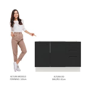 Itens inclusos: Um (1) Balcão de 120 cm de largura com duas (2) portas e três (3) gavetas (Não acompanha tampo).