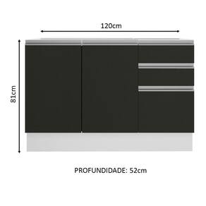 - Um (1) Balcão de 120 cm de largura com duas (2) portas e três (3) gavetas (Não acompanha tampo).