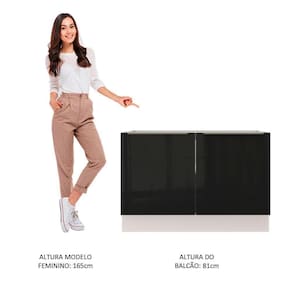 Possui duas portas e a ótima profundidade proporciona muito espaço para organizar panelas, utensílios, louças e produtos de limpeza. O espaço para a colocação de tampo ou pia é de 120 cm de largura por 60 cm de profundidade.