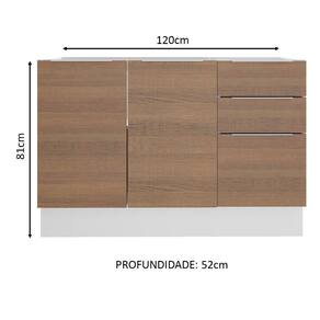 Itens inclusos: - Um (1) Balcão de 120 cm de largura com duas (2) portas e três (3) gavetas (Não acompanha tampo).