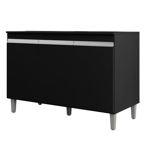 Balcão de Cozinha Manu Tampo120 cm Preto Fosco - AJL