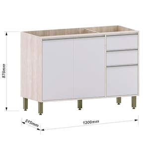 • 1 x Balcão de Pia para Cozinha 120 cm 2 Portas 3 Gavetas Atenas