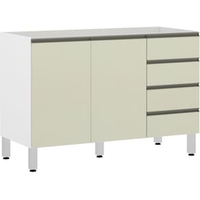 Balcão De Pia Sem Tampo Para Cozinha 120cm 2 Portas 4 Gavetas Pérola Luciane Móveis Branco Polar Com Kashmir Balcão Luciane Pérola tudo que sua cozinha precisa. Amplo espaço para organização de seus utensílios, além de um designer inovador.