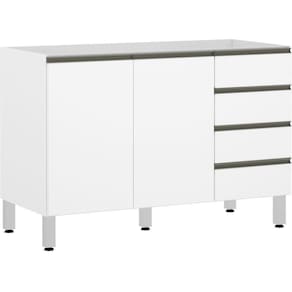 Balcão De Pia Sem Tampo Para Cozinha 120cm 2 Portas 4 Gavetas Pérola Luciane Móveis Branco Polar Balcão Luciane Pérola tudo que sua cozinha precisa. Amplo espaço para organização de seus utensílios, além de um designer inovador.