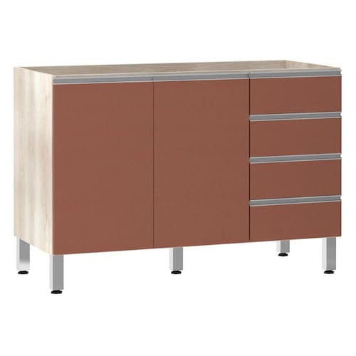 Balcão De Pia Sem Tampo Para Cozinha 120cm 2 Portas E 4 Gavetas Lis Luciane Móveis Legno Crema Com Gaia