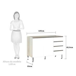 Balcão De Pia Sem Tamp 120cm E Luci Legno Crem e Branco
