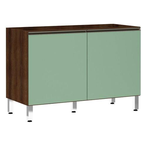 Balcão De Pia Sem Tampo Para Cozinha 120cm 2 Portas Jade Luciane Móveis Nogueira Dourado Com Verde Jade