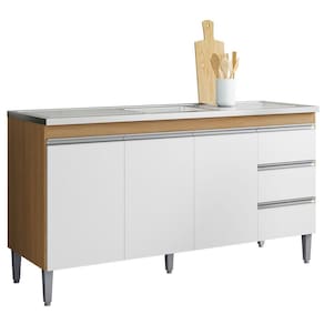 Características do Balcão de Pia Sem Tampo 160 cm 3 Portas 3 Gavetas Adriana: